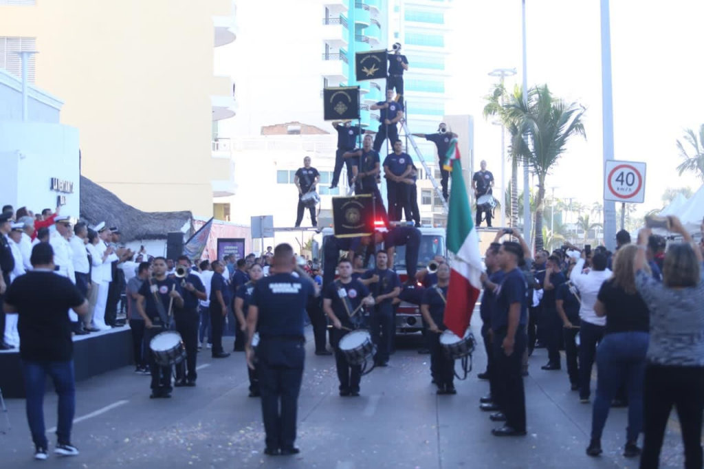 Con la participación de 36 instituciones educativas, Náutica Mercante, corporaciones de seguridad y cuerpos de auxilio, y 3 mil 505 alumnos, la Presidenta de Mazatlán, Estrella Palacios Domínguez, presidió el desfile cívico-militar por el 114 aniversario del inicio de la Revolución Mexicana.