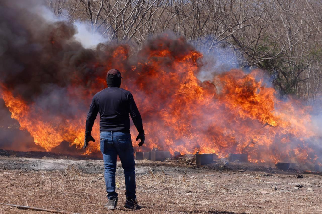CULIACÁN. – Artefactos utilizados por la delincuencia que fueron decomisados en operativos conjuntos con las fuerzas federales en los municipios de Culiacán, Navolato y Mazatlán, así como diversos tipos de drogas, fueron incinerados hoy ante la presencia del gobernador Rubén Rocha Moya, en donde también se destruyeron objetos diversos como máquinas tragamonedas, chalecos tácticos, placas balísticas y drones, entre otros artefactos decomisados a la delincuencia.