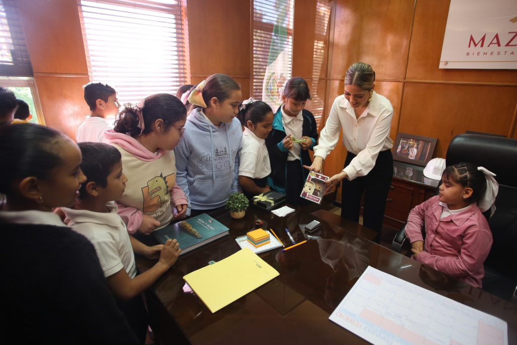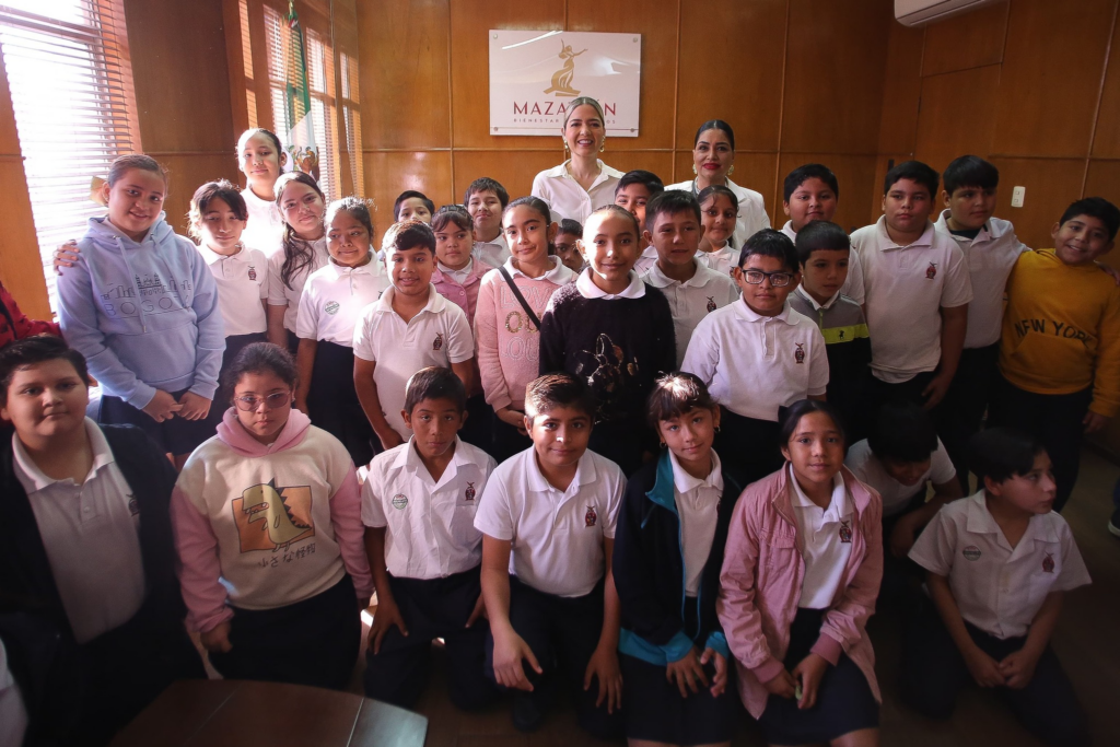 Con mucha emoción y cargando sus sueños de hacer realidad el conocer el corazón del Palacio Municipal de Mazatlán, las y los niños fueron acompañados por Estrella Palacios de la explanada del Ayuntamiento a la oficina de Presidencia, momento en el que la primera mujer Presidenta del Municipio les explicó el hecho histórico que está viviendo Mazatlán y México con la llegada de las primeras mujeres presidentas.