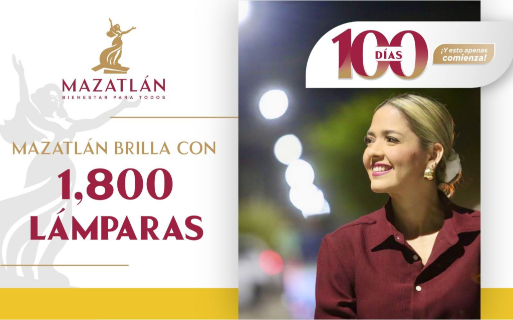 *En los Primeros 100 Días de Gobierno, se superan las metas y se logra dar mantenimiento a 190 kilómetros de los caminos que alimentan a Mazatlán; se reparan 2,515 baches en todo el puerto; se pavimentan 8 calles y se da inicio a otras 9; se reparan 1,800 luminarias; se remodelan 10 nuevos parques infantiles y se rehabilitan más de 500 áreas verdes