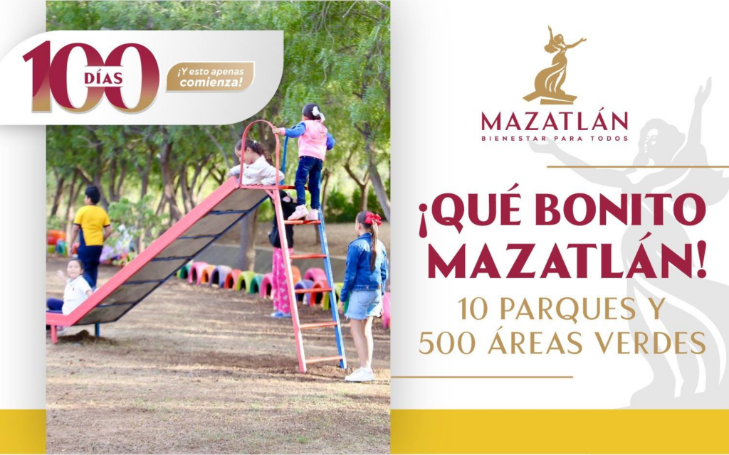 La Presidenta informó que a través del programa “¡Qué Bonito Mazatlán!”, se construyeron y remodelaron 10 nuevos parques infantiles y se rehabilitaron más de 500 áreas verdes en todo el municipio, espacios donde se reconstruye el tejido social; de igual manera, se instalaron 20 obras hidráulicas y sanitarias emergentes en calles de la ciudad para servir a 20 mil mazatlecos.
