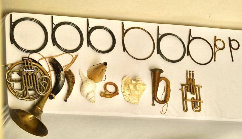 Un cuerno de vaca, un shofar ceremonial de judíos, un caracol de mar y otros instrumentos musicales de viento fueron utilizados por el cuarteto para iniciar el programa con: The happy huntsman de Alfred Diewits.