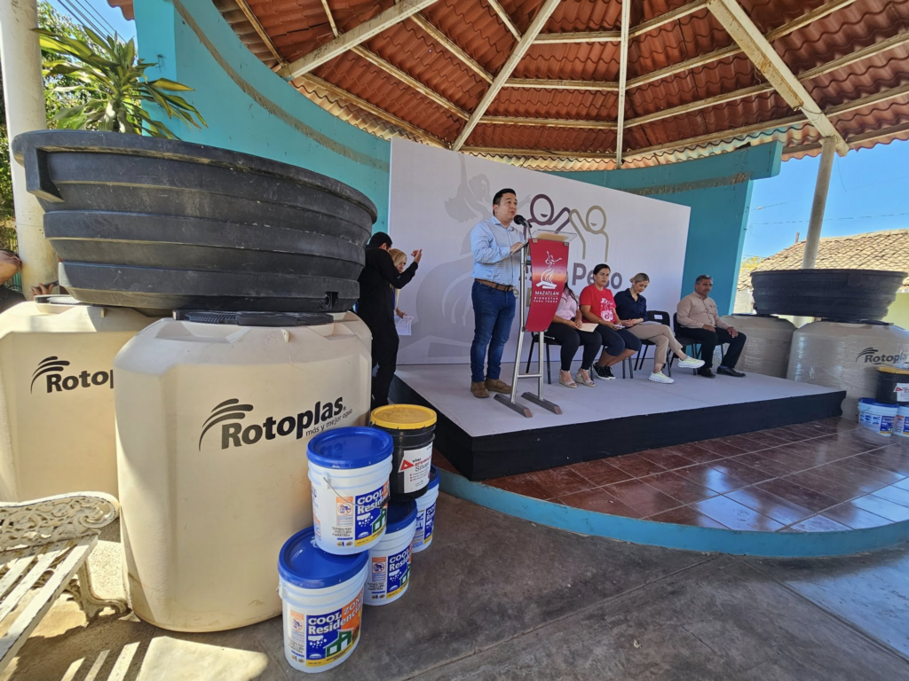 El evento estuvo encabezado por la Presidenta de Mazatlán, Estrella Palacios Domínguez, quien destacó que este programa está uniendo al pueblo y al gobierno para que cada vez más personas y familias sean beneficiadas en la zona rural y urbana, esto al hacer entrega de 55 tinacos, 5 bebederos y 6 apoyos de pintura para vivienda, que suman un total de 66 apoyos entregados.