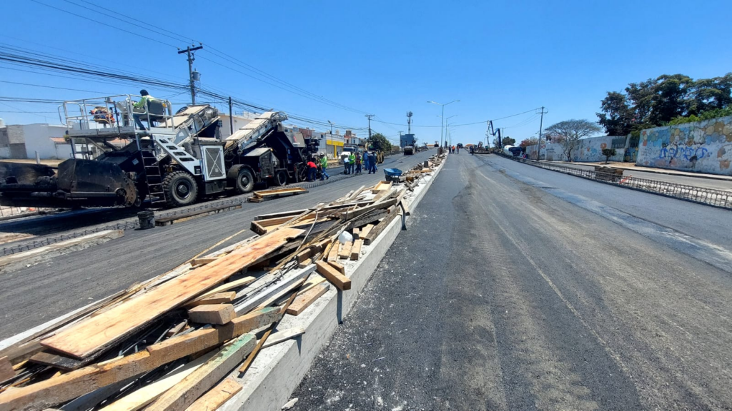 “En estos momentos se está trabajando intensamente para que ya esté lista la circulación de vehículos en la parte de abajo y la parte del puente este próximos sábado 12 de abril”.