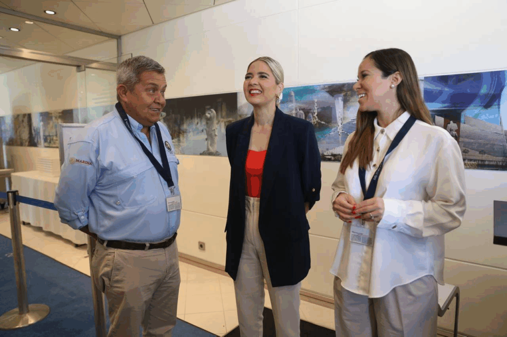 La Presidenta Municipal, Estrella Palacios Domínguez, la Secretaria de Turismo (SECTUR) de Sinaloa, Mireya Sosa Osuna, y el titular de la Administración del Sistema Portuario Nacional (ASIPONA) en Mazatlán, Contralmirante Mariel Aquileo Ancona Infanzón, dieron la bienvenida a los cruceristas y recorrieron el recinto fiscal.