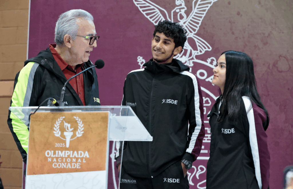 CULIACÁN.- El Gobernador Rubén Rocha Moya, acompañado del Director del Instituto Sinaloense del Deporte Julio César Cascajares Ramírez, abanderó a la delegación sinaloense que, conformada por 600 deportistas, representará a Sinaloa en las Olimpiadas Nacionales CONADE 2025, que tendrá como sedes los estados de Jalisco, Colima, Puebla, Tlaxcala y Yucatán, del 15 de mayo al 25 de julio.