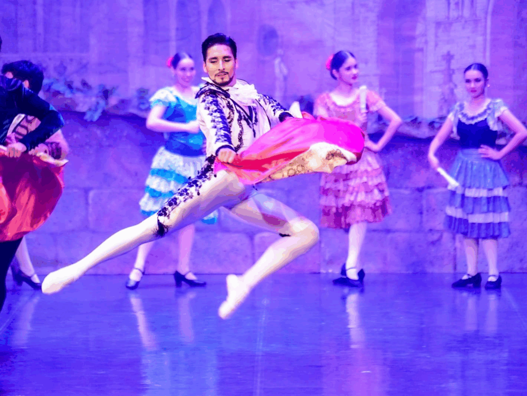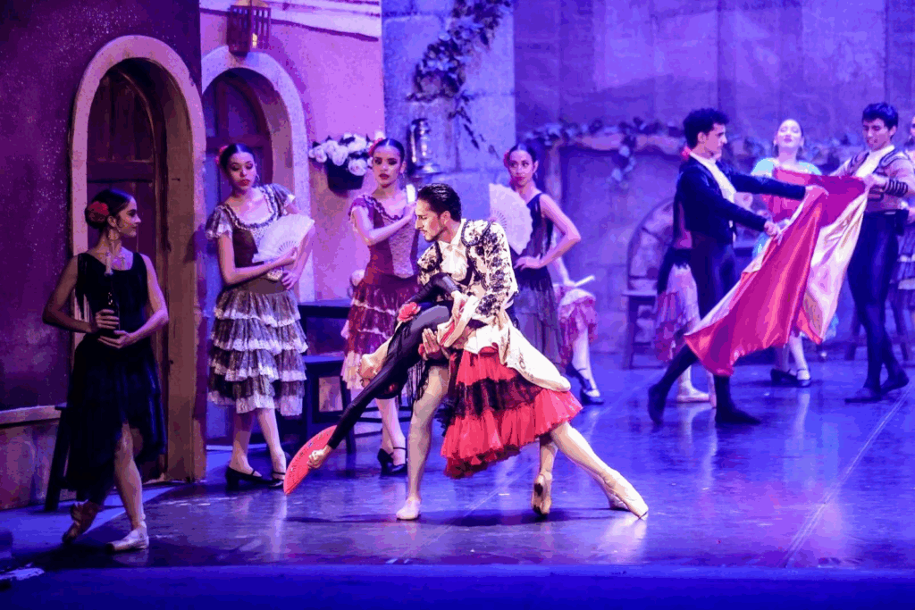 Los bailarines, demostraron dominio técnico en movimientos exigentes como los grands jetés, pirouettes, fouettés, arabesques, attitudes, y brillantes secuencias de pas de deux, especialmente en el famoso pas de deux de Kitri y Basilio, uno de los momentos más esperados de la noche por su dificultad y espectacularidad.