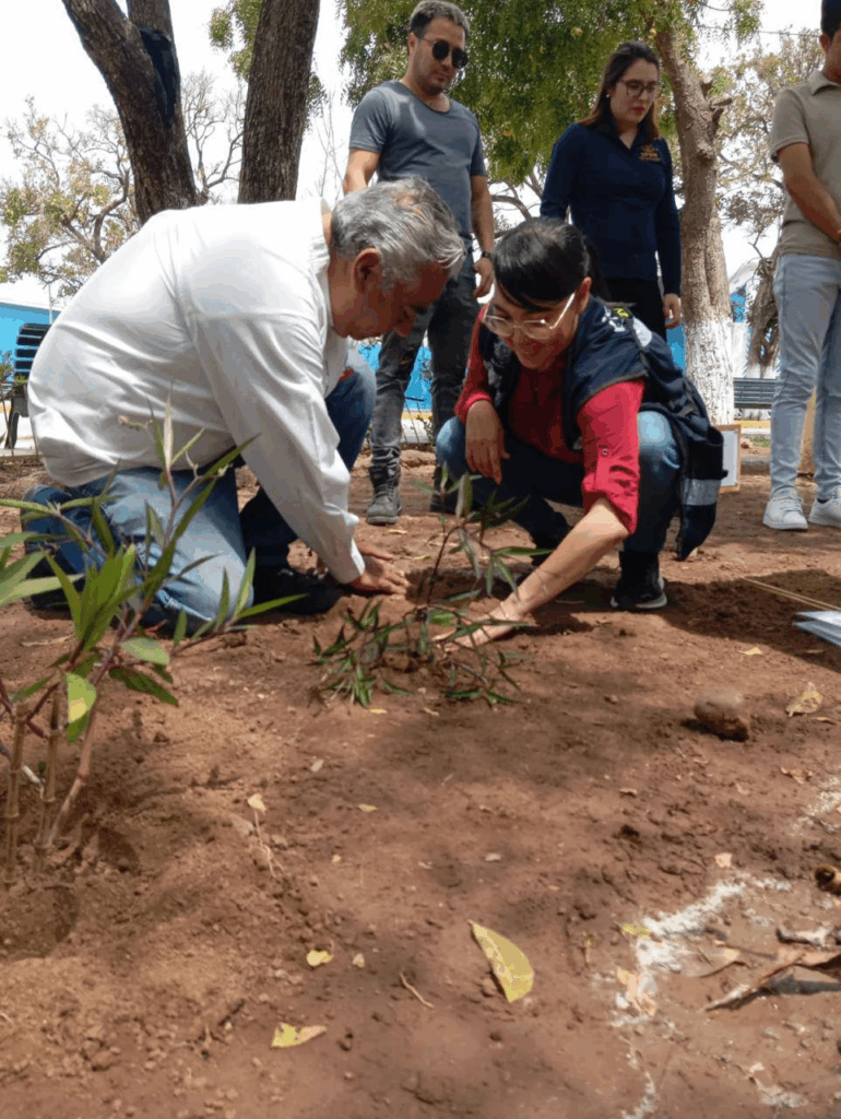 De esta manera, se dio un banderazo simbólico, el cual marcó la selección del área destinada al jardín y la plantación de cuatro petunias, que embellecerán el espacio y servirán como una fuente de alimento para las abejas.