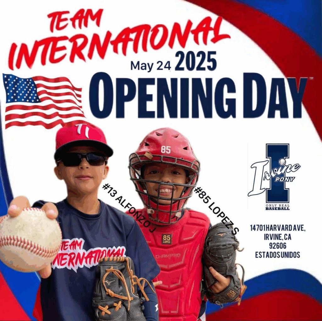IRVINE, California. – Con una participación perfecta en su paso por la liga Irvine Pony Baseball Memorial Day Tournament, en California, José Andrés Gámez del equipo Team International, llega a su quinto torneo.