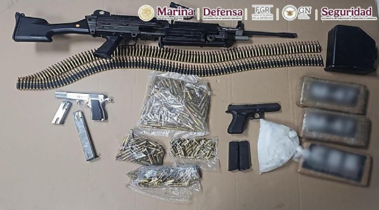 En el lugar donde los detuvieron incautaron 2 armas largas, 3 cortas, cartuchos, así como dinero en efectivo. También decomisaron sustancias ilícitas tales como 21 kilos de marihuana, metanfetamina y cocaína.