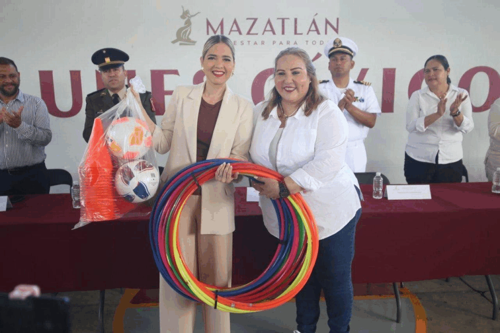 * La Presidenta Municipal de Mazatlán señala que en su gobierno la prioridad es que las escuelas estén siempre limpias, seguras y llenas de oportunidades