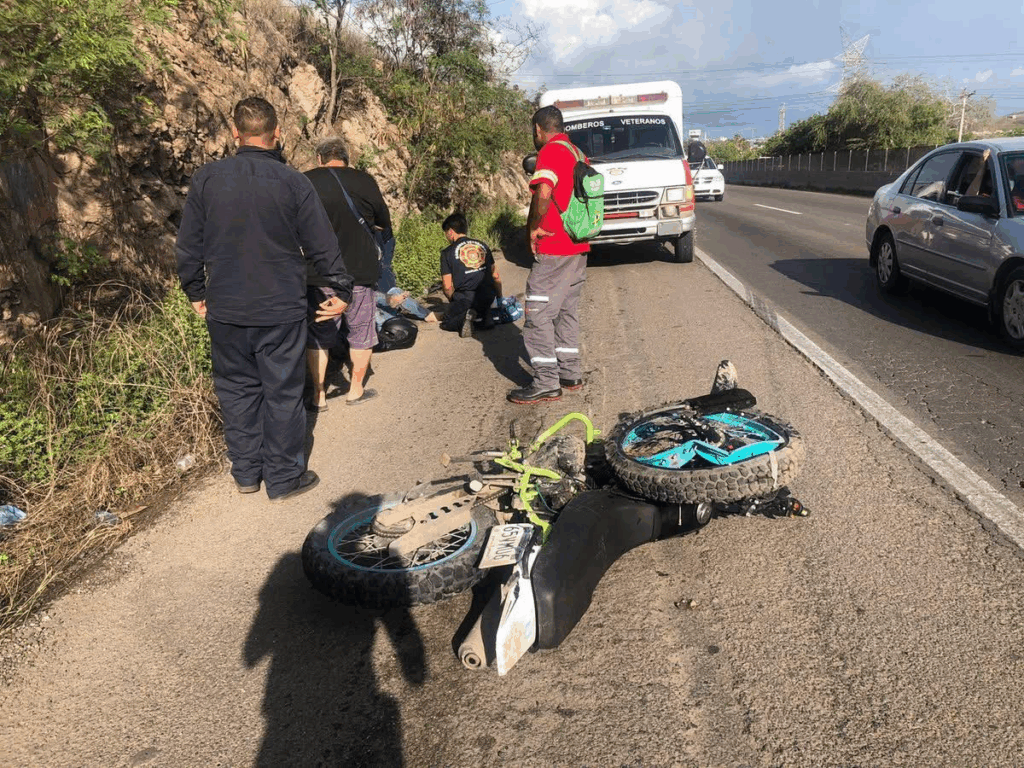 Un joven motociclista terminó con lesiones de gravedad tras un accidente registrado sobre la carretera internacional al sur, a la altura del fraccionamiento Estancia Magnolia. Al lugar acudieron elementos de Bomberos Veteranos, quienes brindaron los primeros auxilios antes de que el herido fuera trasladado a un hospital para su atención médica.