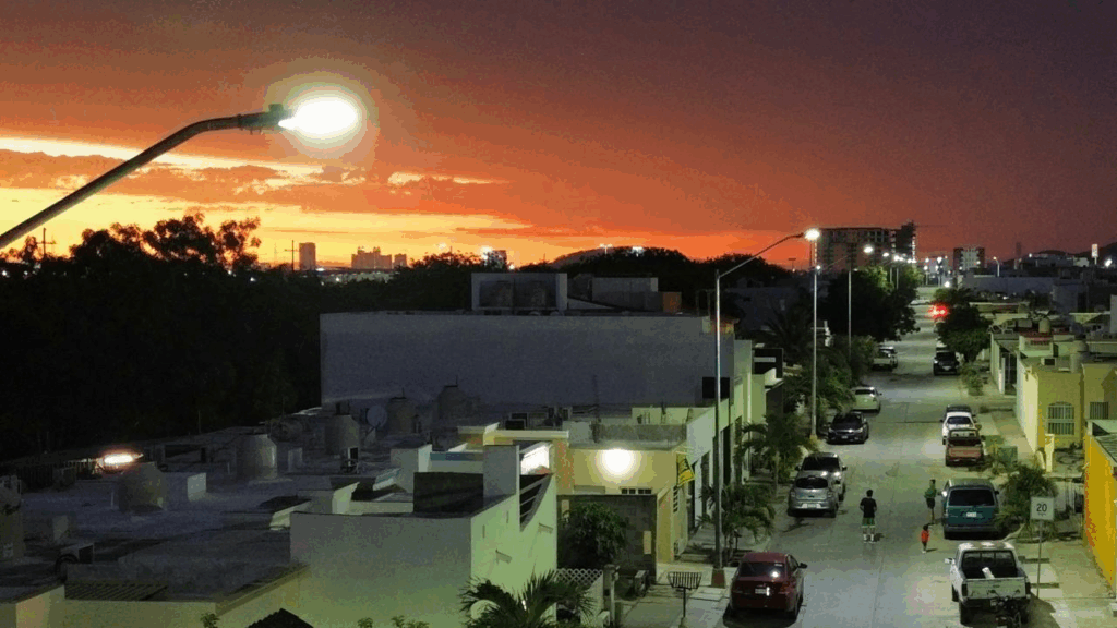 Los vecinos del fraccionamiento Real Pacífico fueron beneficiados con la instalación de 297 luminarias ahorradoras LED, como parte del programa “Mazatlán Brilla”, que se extiende por las diversas colonias de la ciudad, con el objetivo de mejorar el entorno y brindar una mayor seguridad a las familias durante las noches.