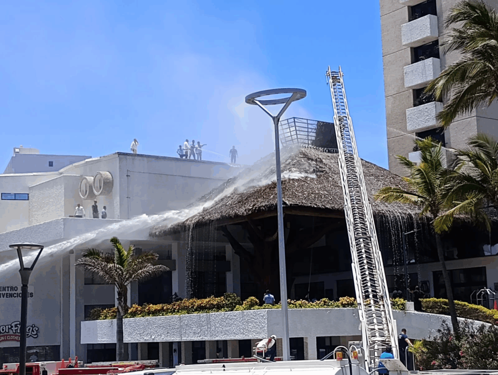 La mañana de este viernes se registró un incendio en la palapa del lobby principal del Hotel El Cid, ubicado sobre la transitada avenida Camarón Sábalo, en la zona hotelera de Mazatlán.