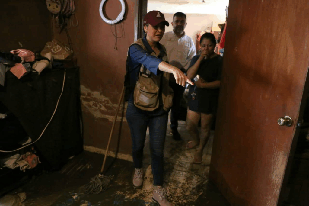 Estrella Palacios entró hasta algunas viviendas de familias asentadas en zonas bajas, mostrando su disposición y apoyo en caso de ser necesario.