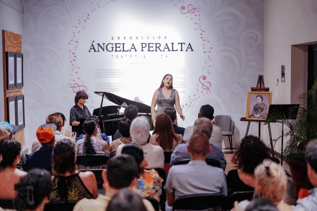 La soprano Vanessa Gama (Premio Mozart en el Concurso Nacional de Canto “Carlo Morelli” 2025) y el pianista Elías Esparza ofrecieron un emotivo recital en la planta alta del Teatro Ángela Peralta, en el espacio dedicado a recordar el legado de la célebre artista mexicana. El concierto, que tuvo lugar la noche del viernes 4 de julio, rindió un sentido homenaje a Ángela Peralta con motivo de su 180 aniversario de natalicio, celebrado el 6 de julio de 1845.