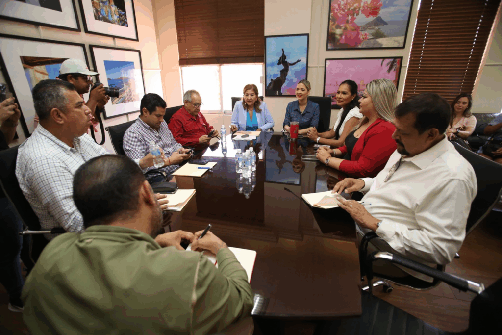 Llevando la anfitrionía de la reunión y acompañada también por el Secretario del Ayuntamiento, Moisés Ríos Pérez, y del Tesorero Municipal, Julio César Ramos Robledo, la Presidenta Estrella Palacios sostuvo este medio día de sábado una reunión que estableció una mesa de trabajo donde se abordaron temas que son importantes y relevantes para el desarrollo en todos los escenarios de Mazatlán.