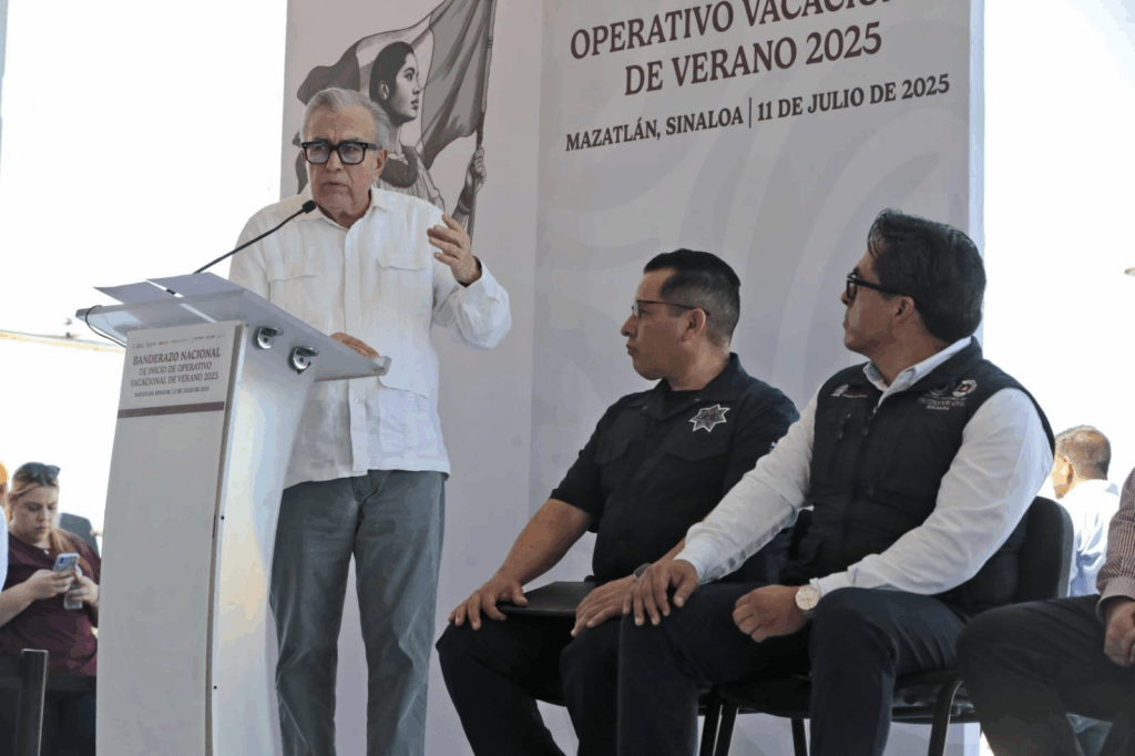 Desde el emblemático puerto de Mazatlán, el gobernador Rubén Rocha Moya, acompañado de Hernán Cortés, comandante de la Guardia Nacional, dio el Banderazo Nacional de Inicio de Operativo Vacacional de Verano 2025, que permitirá que los ciudadanos visiten los destinos turísticos nacionales e internacionales con tranquilidad.
