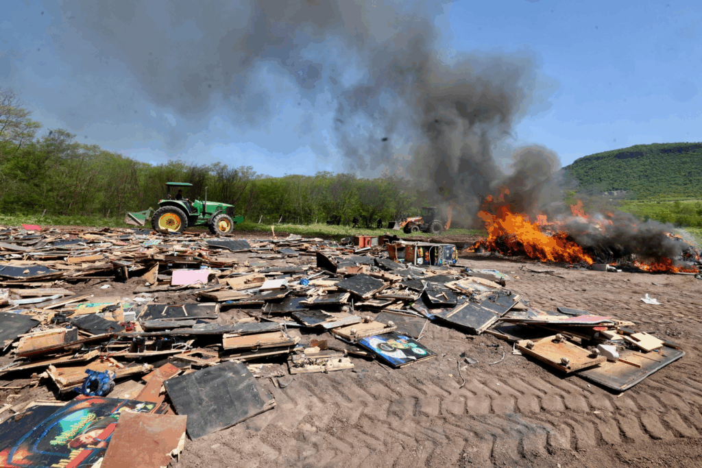 El mandatario estatal asistió por tercera ocasión a un predio ubicado en el ejido Los Becos, al sur de Culiacán, lugar donde la Fiscalía General de la República realiza de manera periódica la incineración de drogas, y en esta ocasión también participó la Fiscalía General del Estado, pues por primera vez se procedió a la destrucción de mil 652 cámaras de videovigilancia clandestinas, que han sido retiradas de la vía pública.