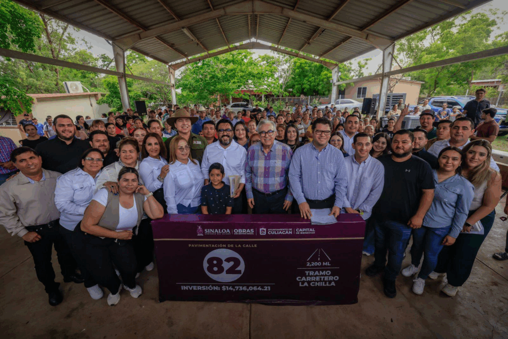 LA CHILLA, Culiacán.- Dignificando la vida de la gente con obras con sentido social, que mejoren las condiciones de vida, refuercen la conectividad y la seguridad de la comunidad de La Chilla y Las Flores, el gobernador Rubén Rocha Moya, acompañado del alcalde Juan de Dios Gámez, entregaron un paquete de obras, con una inversión superior a los 20.6 millones de pesos, en beneficio a los habitantes de la sindicatura de Tacuichamona,