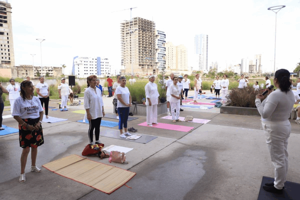 En el marco del Día de las y los Abuelos, a celebrarse el próximo 28 de agosto, un número importante de adultos mayores disfrutaron de una clase de yoga al aire libre en el Parque Central de Mazatlán, como parte del programa de actividades impulsado por el Sistema DIF Municipal.