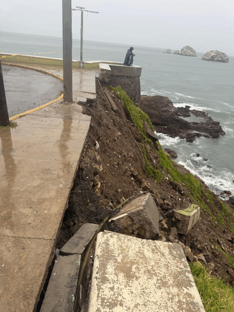 Debido a las lluvias registradas durante la noche y madrugada, la zona rocosa del paseo de Centenario, en específico donde se encuentra la glorieta, sufrió reblandecimiento y deslave del área rocosa, situación por la cual la Coordinación Municipal de Protección Civil mantendrá delimitada la zona.