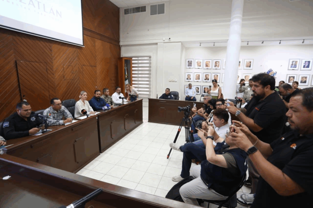 En la rueda de prensa, estuvieron presentes el Secretario del Ayuntamiento, Moisés Ríos Pérez; del Octavo Batallón de Infantería, Genaro Aurelio Avendaño López; el Teniente Coronel de la Guardia Nacional, Guillermo Caballero de León; el Capitán de Fragata Rigoberto García Reyes, de la Cuarta Región Naval; de la Secretaría de Seguridad Pública de Sinaloa, Aldo Giovanni García Reyes; el Secretario de Seguridad Pública Municipal, Jaime Othoniel Barrón Valdez; el Director Operativo de la Secretaría de Seguridad Pública Municipal, José Francisco Villegas López; y el Coordinador Municipal de Protección Civil, Óscar Roberto Osuna Tirado.