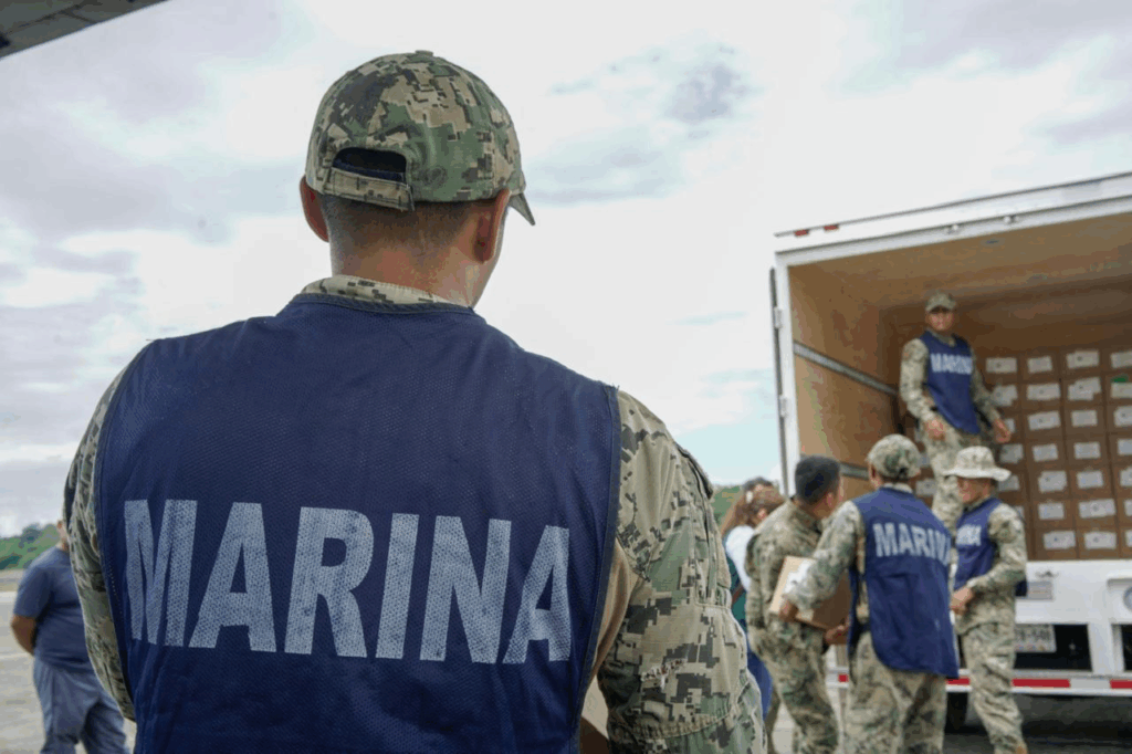 Ciudad de México.- La Secretaría de Marina a través de la Armada de México informa que, en el marco de la implementación del Plan Marina en diversos estados del país, se estableció un puente aéreo con unidades aeronavales para la entrega de medicamentos, insumos médicos y agua embotellada a la población que se vio afectada por el paso de fenómenos meteorológicos.