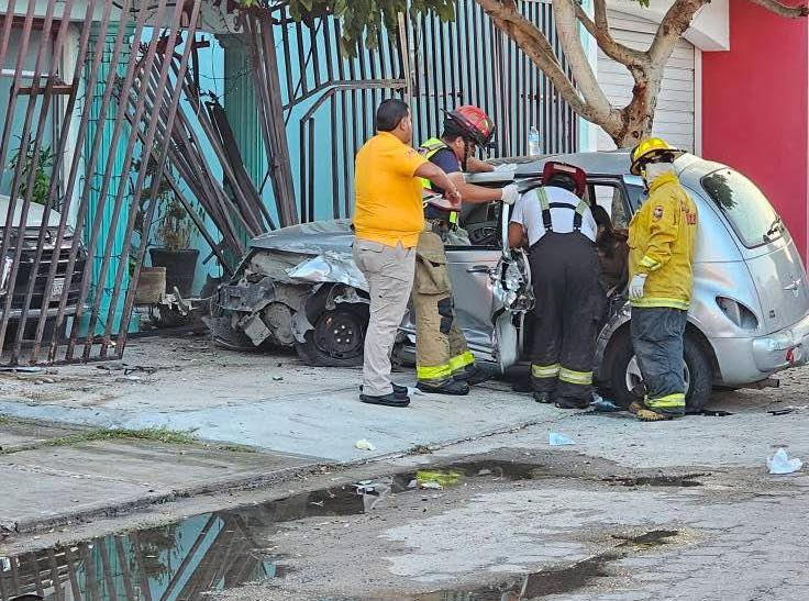 Un vehículo perdió el control cuando circulaba por el fraccionamiento Lomas de Mazatlán, terminando impactado contra el portón de una vivienda y posteriormente contra un árbol. En el interior viajaban dos mujeres y un hombre, quienes resultaron con lesiones tras el fuerte impacto.
