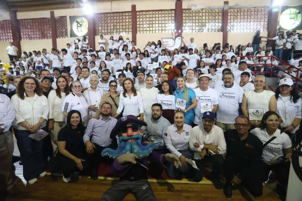 La educación es la base de una cultura de la paz y parte esencial de la Estrategia Nacional de Seguridad, que permite construir un Mazatlán más consciente y solidario, enfatizó la Presidenta Municipal, Estrella Palacios Domínguez, al asistir este sábado el evento “Jornada Nacional por la Paz y contra las Adicciones”, llevado a cabo en el auditorio de la Escuela Secundaria Técnica Industrial No. 5, en el marco de la Estrategia de Cultura de Paz promovida a nivel nacional.