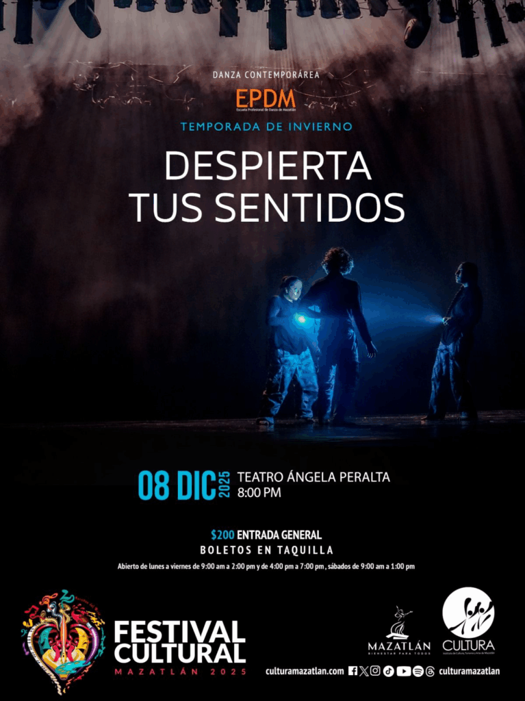 El lunes 8 de diciembre a las 8:00 pm el Festival Cultural Mazatlán 2025 y la EPDM presentarán su emblemática “Temporada de Invierno, despierta tus sentidos”, un programa que año con año se convierte en punto de encuentro para quienes ven en la danza contemporánea un espacio de libertad, identidad y fuerza creativa.