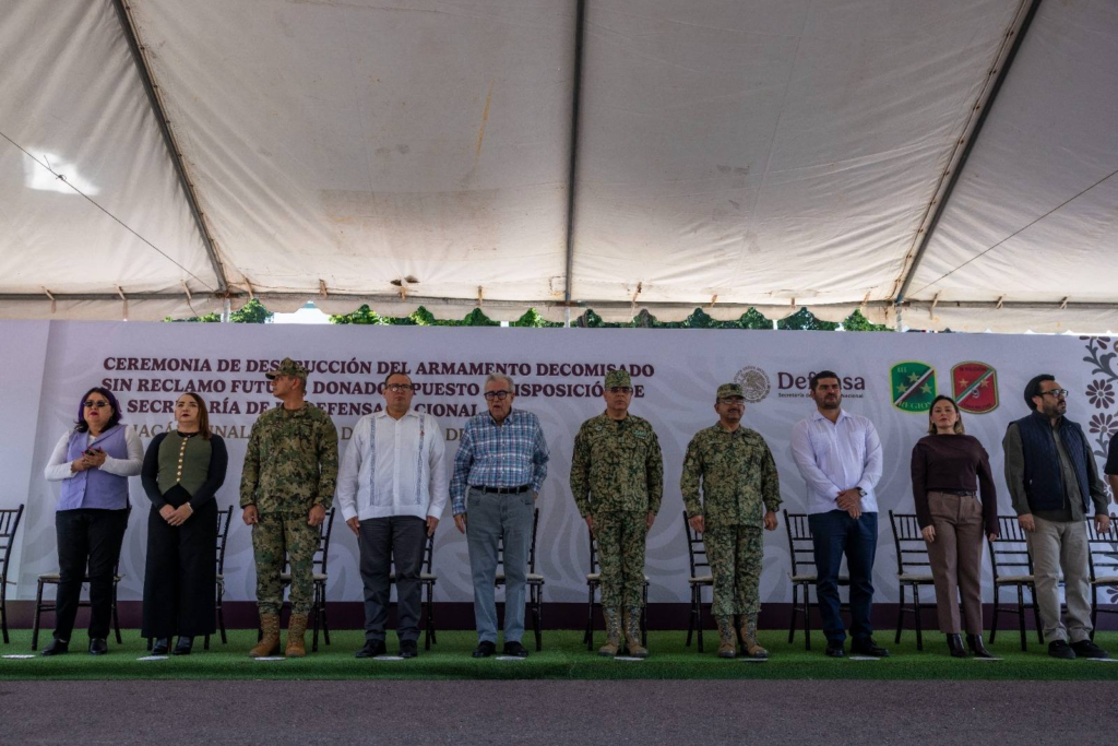 La ceremonia de destrucción de estos objetos del delito, se llevó a cabo en la explanada de la Novena Zona Militar, enmarcado el cierre de la campaña estatal de desarme voluntario 2025 y el programa permanente de decomiso enfocado en lograr un México libre de violencia y delincuencia, a través de acciones encaminadas al bienestar de la población.