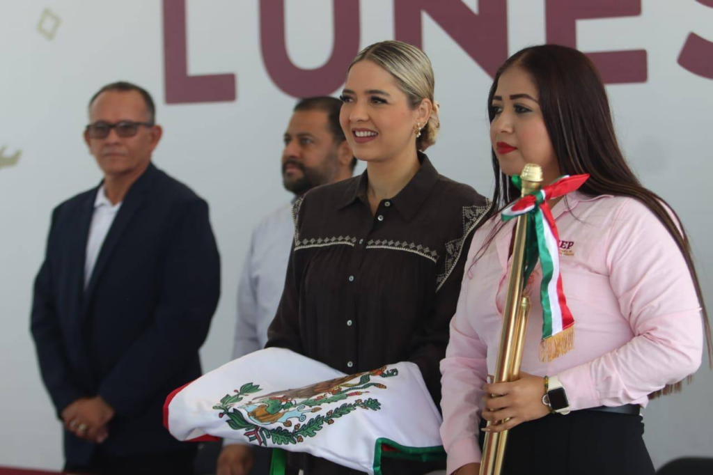En la ceremonia del último Lunes Cívico del año realizado en la Escuela Primaria Francisco I. Madero, en la comisaría de Escamillas, la Presidenta Municipal, Estrella Palacios Domínguez, reafirmó que invertir en la educación es apostar por un presente de armonía y un futuro de prosperidad.