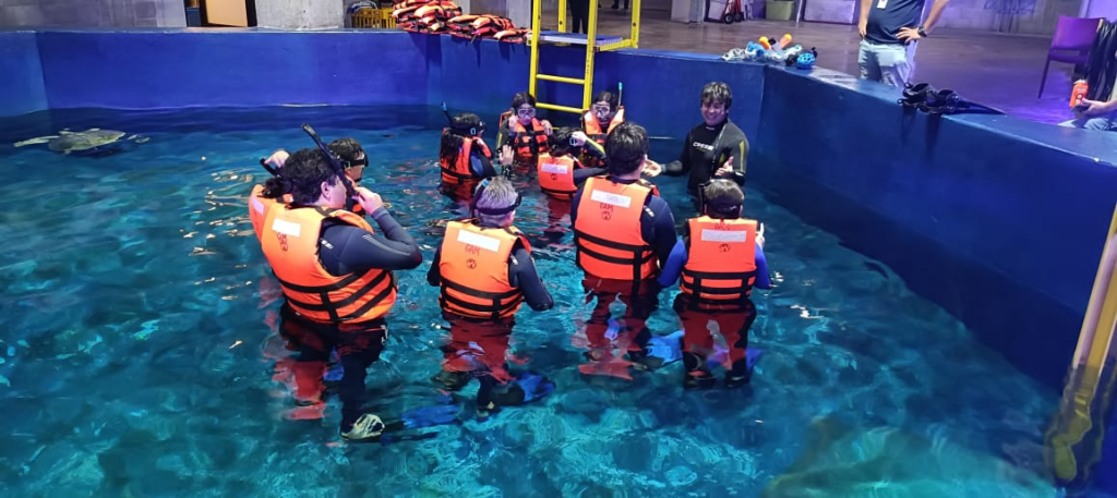 El recorrido también incluye historias que inspiran, como la de Ely, la querida lobita marina en retiro con más de 26 años de legado; así como la emoción de la práctica de buceo y snorkel en el hábitat más grande del acuario, con 3.7 millones de litros de agua de mar, hogar de tiburones, rayas y peces gigantes. El asombro continúa en Ciudad Coral y el Hábitat de los Océanos, donde se encuentra la ventana oceánica más grande de Latinoamérica, uno de los puntos favoritos para capturar la fotografía perfecta bajo una impresionante rompiente.