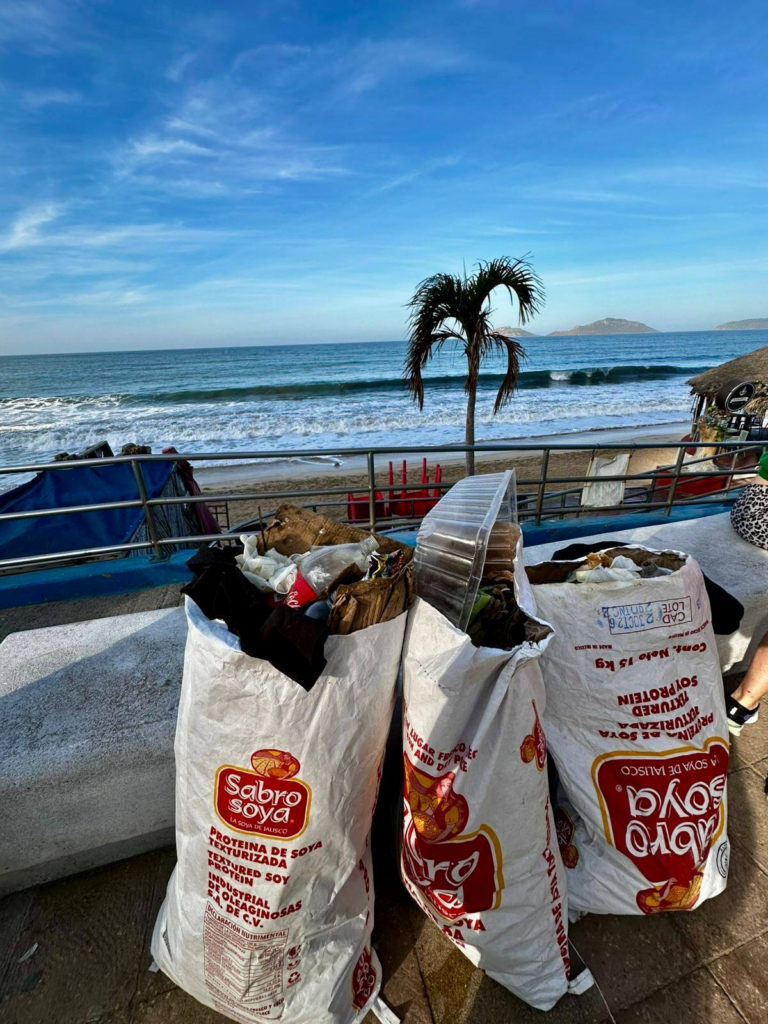 A su vez, la Operadora y Administradora de Playa (OAP), en coordinación con el Instituto Municipal de Cultura, Turismo y Arte de Mazatlán, levantaron un total de 7 metros cúbicos de desechos de las arenas de la franja de playa, que va del Monumento al Pescador hasta las letras de Mazatlán.