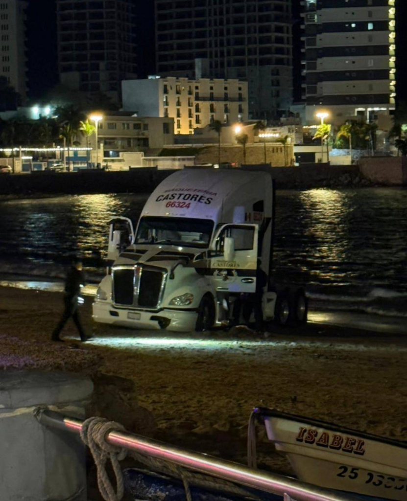 Debido a que el tractocamión quedó atorado en la zona de arena, elementos de la Unidad de Vialidad tomaron conocimiento de los hechos y, en coordinación con personal de grúa, llevaron a cabo las maniobras necesarias para retirar la pesada unidad del área.