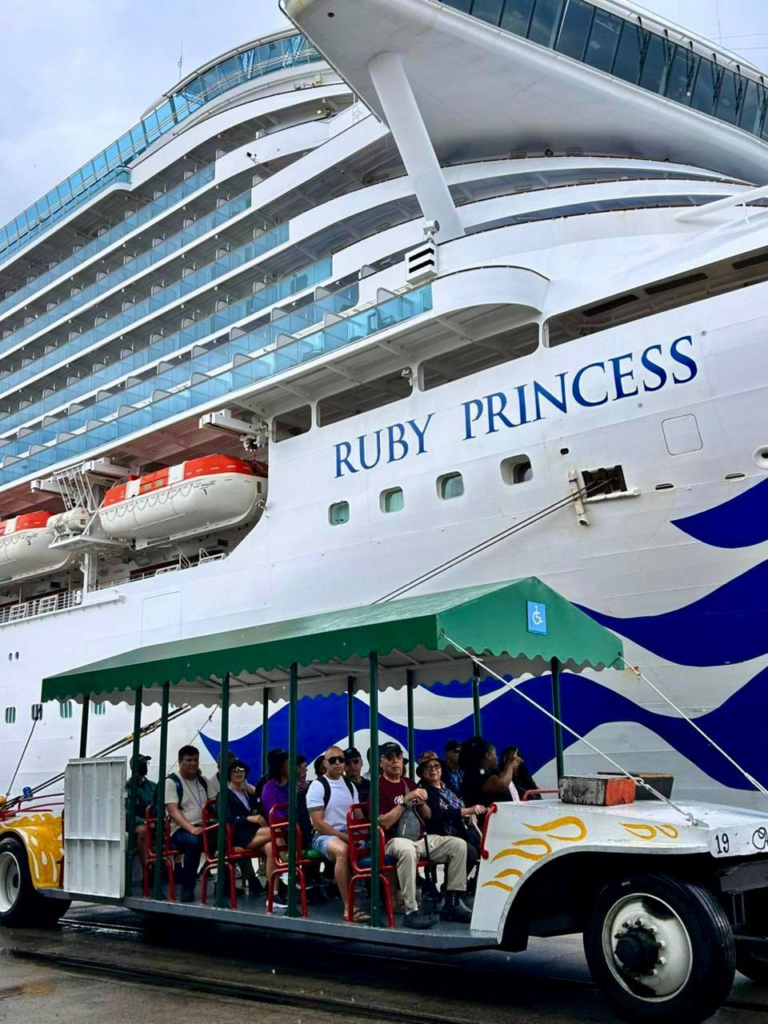 Los visitantes arribaron a bordo del crucero Ruby Princess, quienes aún con la lluvia disfrutaron de los principales atractivos del puerto, como su gastronomía, historia, tradiciones y bellezas naturales.