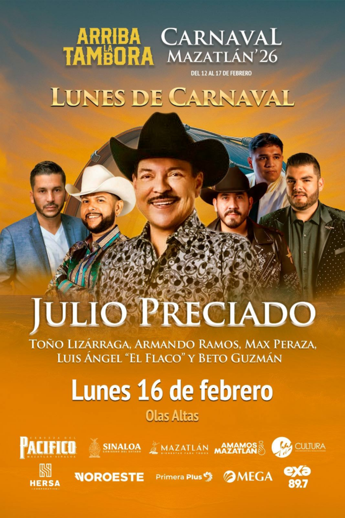 Lunes 16 de febrero: Gran homenaje a la tambora encabezado por Julio Preciado. Estará acompañado por invitados de lujo como Toño Lizárraga, Armando Ramos, Max Peraza, Luis Ángel “El Flaco” y Beto Guzmán.