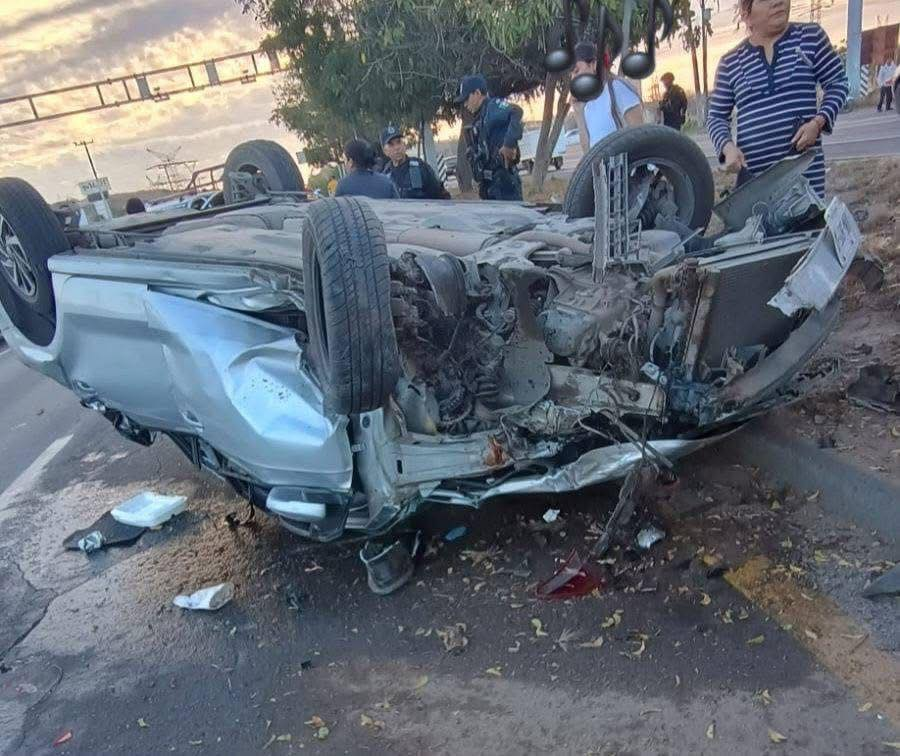 De acuerdo con los primeros reportes, la unidad terminó con las llantas hacia arriba tras chocar contra una estructura ubicada en el camellón central de la carretera Internacional México 15, justo frente a la termoeléctrica.