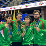 *Logra la presea áurea en la competencia por equipos y la plata en el kumite individual, en...