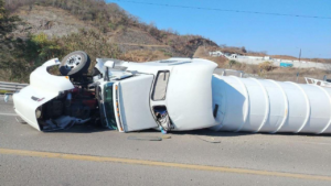 Una fuerte movilización de cuerpos de auxilio se registró luego de que una pipa que transportaba combustible...